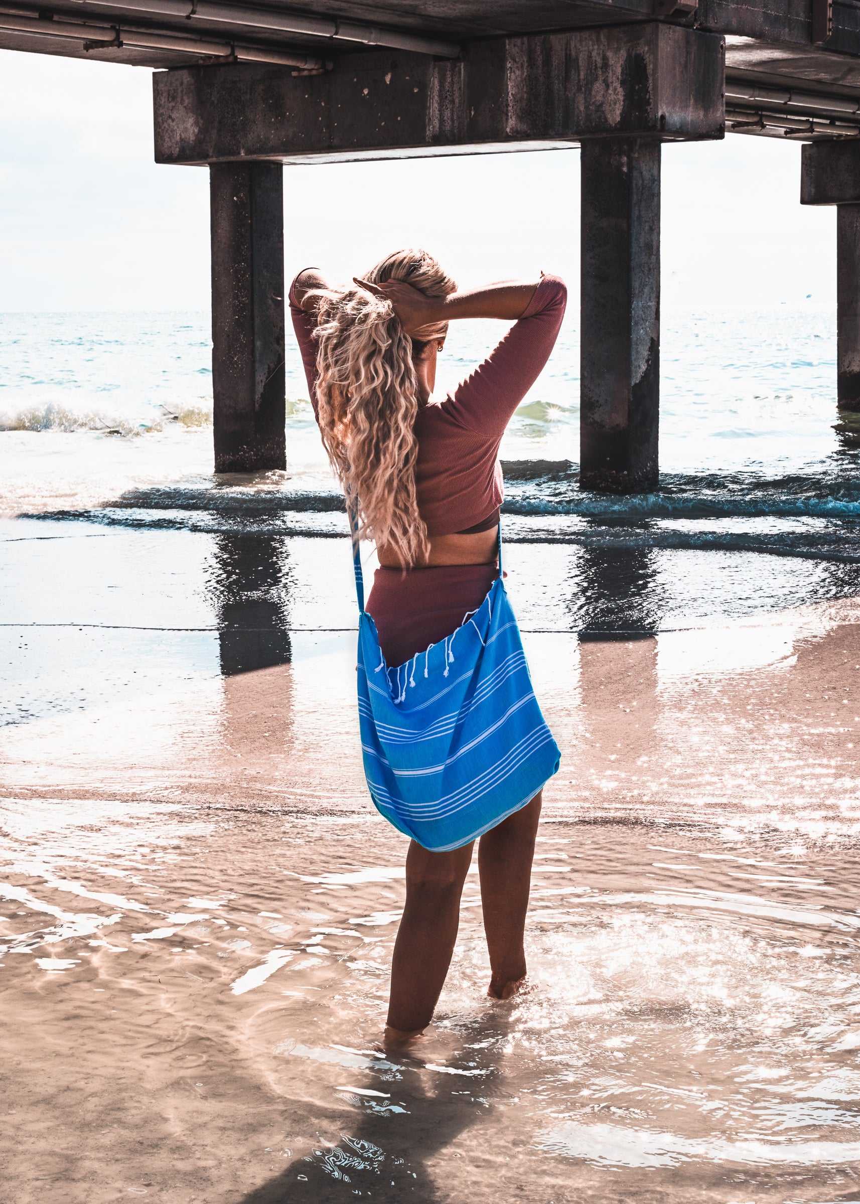 The Original Flippin' Bag!! Our 100% Natural Organic Cotton Turkish Towel/Bag is the ultimate beach bag!! Our super soft and super absorbent Turkish towel flips right into your beach bag with lots of room for your phone, keys, wallet and sunscreen - so you can spend less time packing for the beach and more time enjoying the sun.