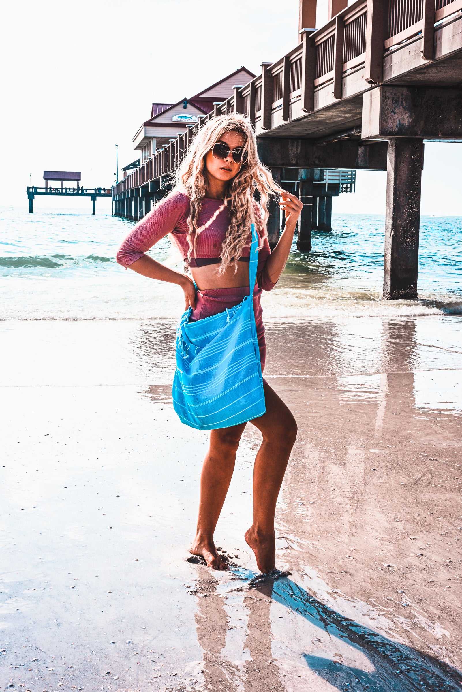 The Original Flippin' Bag!! Our 100% Natural Organic Cotton Turkish Towel/Bag is the ultimate beach bag!! Our super soft and super absorbent Turkish towel flips right into your beach bag with lots of room for your phone, keys, wallet and sunscreen - so you can spend less time packing for the beach and more time enjoying the sun.