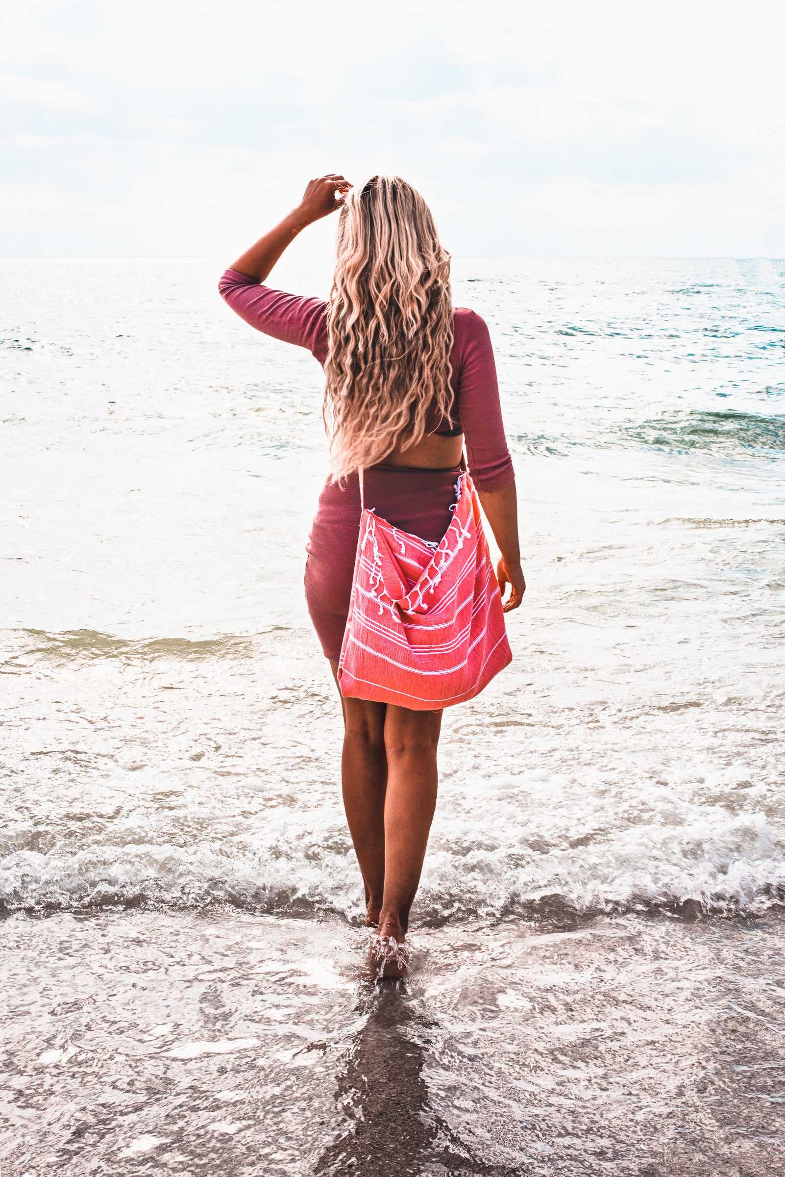 The Original Flippin' Bag!! Our 100% Natural Organic Cotton Turkish Towel/Bag is the ultimate beach bag!! Our super soft and super absorbent Turkish towel flips right into your beach bag with lots of room for your phone, keys, wallet and sunscreen - so you can spend less time packing for the beach and more time enjoying the sun.