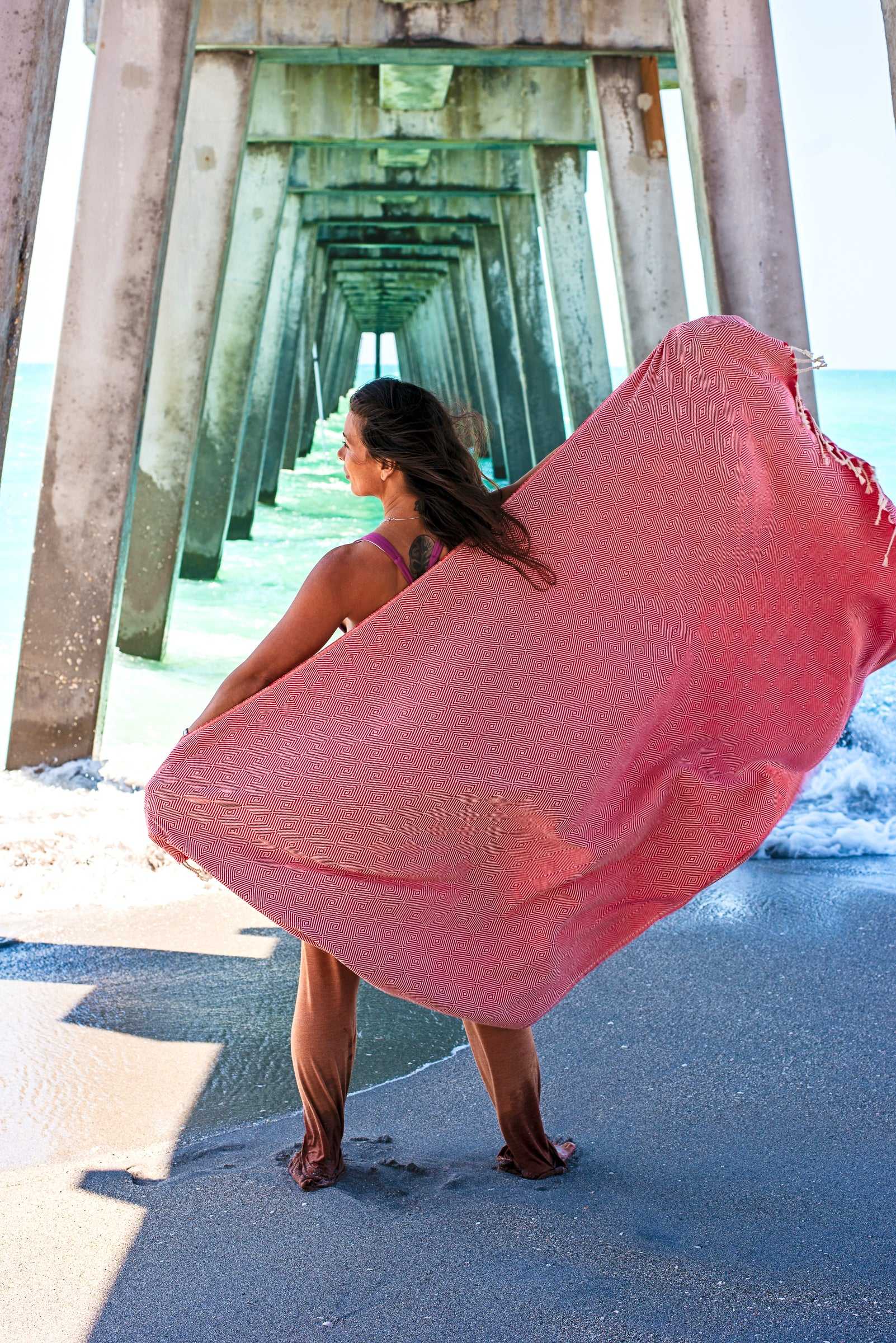 Unlike the lightest of the Turkish towels, the Weekender Turkish Towel has a little more weight and is soft to the touch! They have all the best qualities of the Turkish beach or bath towel as they are highly absorbent yet quick to dry. Best of all, they take up little space are are quick and easy to bring whenever you might need this versatile towel.
